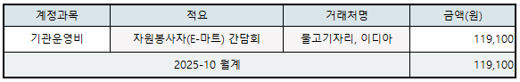 2025년 11월 업무추진비 사용내역을 공고합니다.