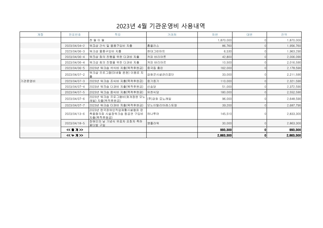 2023년 4월 업무추진비 사용내역 공지