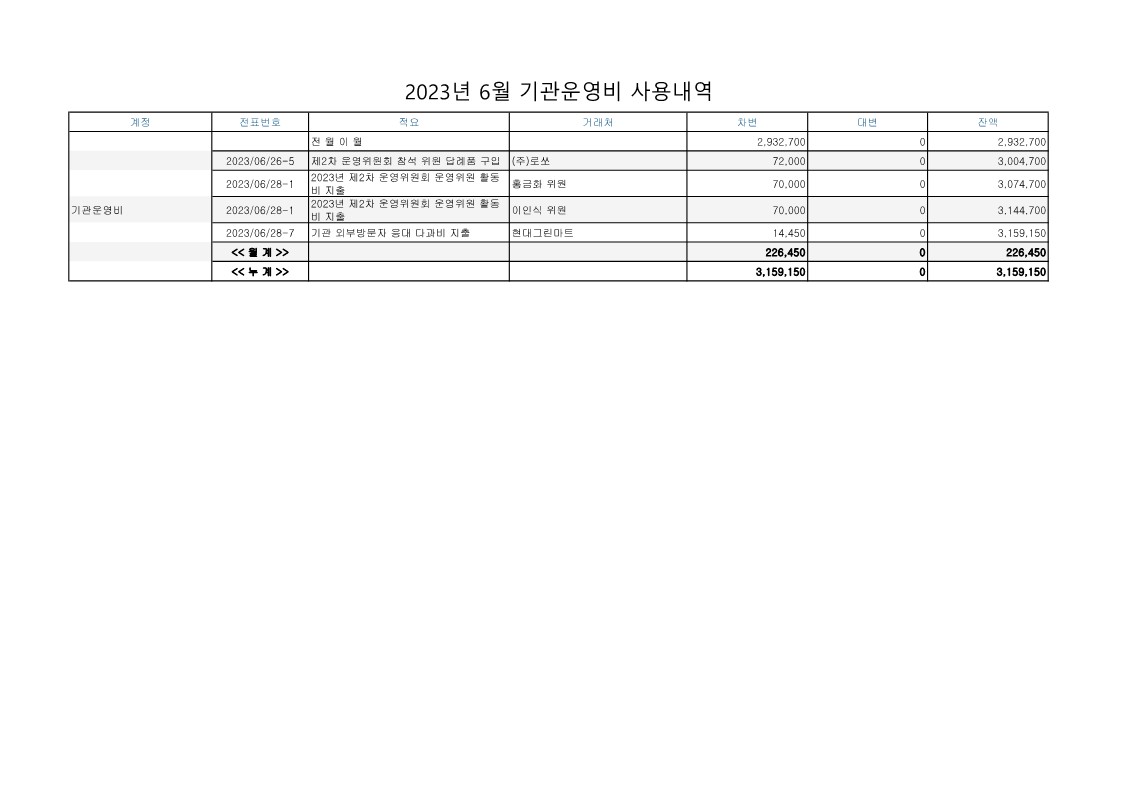 2023년 6월 업무추진비 사용내역 공지