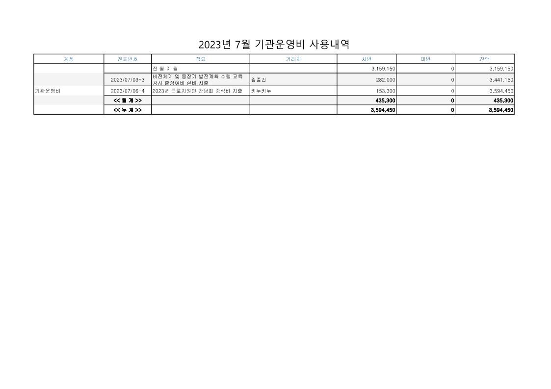 2023년 7월 업무추진비 사용내역 공지