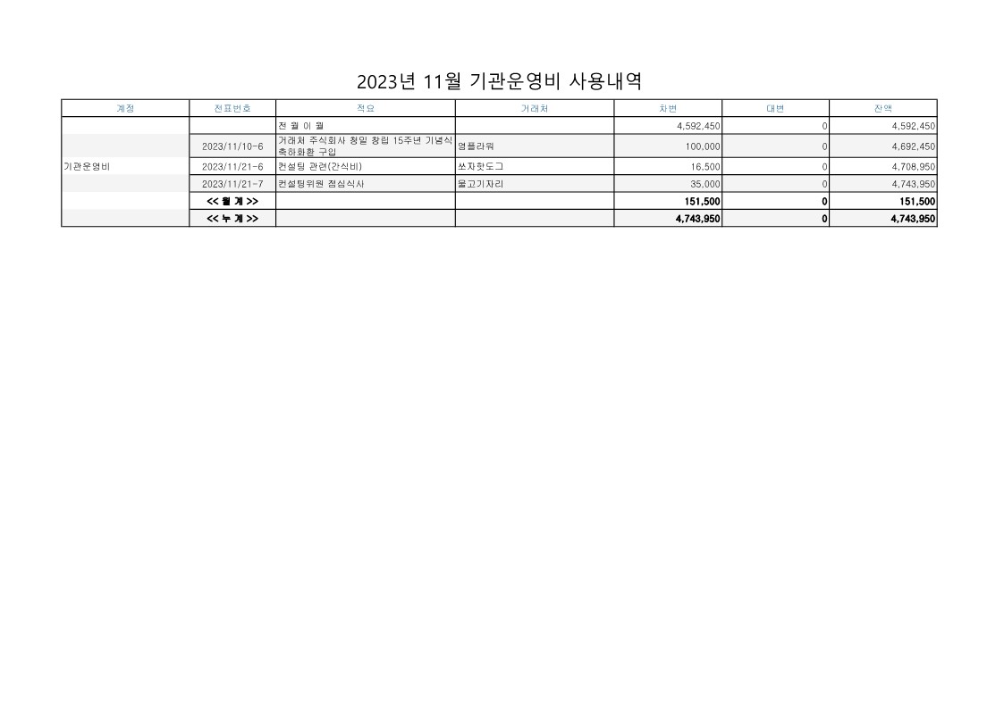 2023년 11월 업무추진비 사용내역 공지